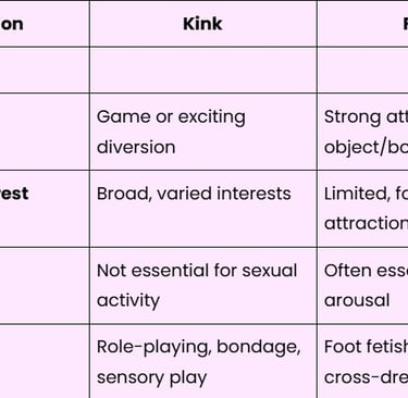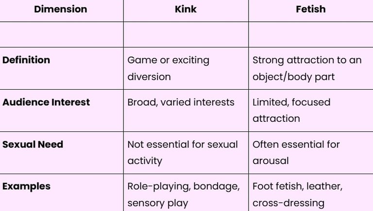While often used interchangeably, "kink" and "fetish" have distinct meanings in BDSM.